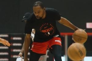 体育资讯9月26日讯 火箭官方晒出新援杜兰特今天的训练视频。