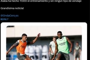 体育资讯8月5日讯 据记者Alberto Pereiro报道称,阿拉巴完整地参加了皇马全队的合练,并且没有缠任何绷带。
