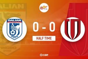 上半场比赛结束,成都蓉城客场暂时0-0战平大连英博。