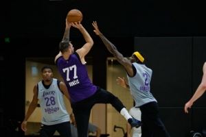 湖人官方晒训练照:东契奇后仰跳投 雷迪克指挥 詹姆斯不在列