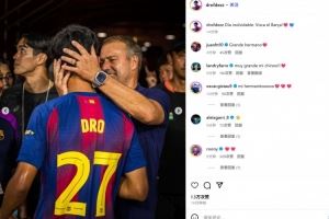 这位小将也通过社媒晒出同主帅弗里克互动的照片,并配文:“难忘的一天!巴萨万岁!”