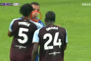 奥纳纳当时突然捂住自己的脸,转身看向本场比赛的法国裁判米洛特。随后明斯上前抓住格林伍德球衣,格林伍德球衣在冲突中被扯烂。